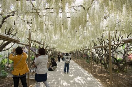 あしかがフラワーパークの魅力は、大藤だけではありません。園内には、八重藤やきばな藤など様々な種類の藤が咲き誇り、花のトンネルもあり、幻想的な景観です。