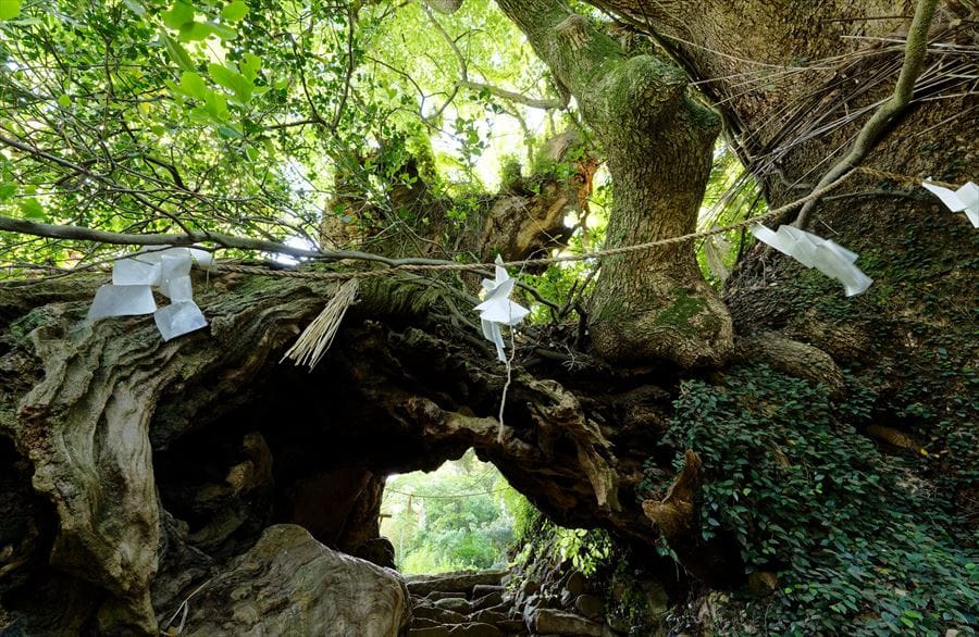 木の中に石段があり、門になっている珍しい巨木。