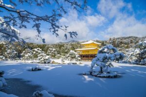 雪が降った日の銀閣寺もまた、特別な美しさがあります。金閣寺の豪華絢爛さとは異なり、雪の白と建物の色合いが調和し、「侘び寂び」の世界がより一層際立ちます。まるで水墨画のような、白と黒のモノトーンの世界は、非常に趣深く、見飽きることがありません。