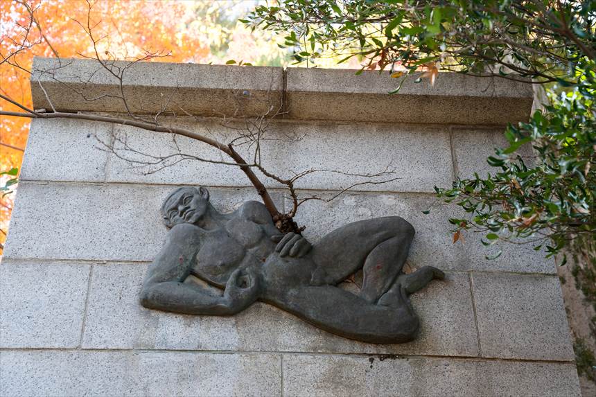 焦るハチな、なんだこのシュールな像は…