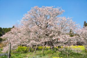 ヤマザクラの変種で、こちらは日本最古級のヤマザクラです。菜の花畑に囲まれており、黄色と薄ピンクのコントラストが春らしい景色を作り出します。下馬桜のみ1952年に特別天然記念物の指定を受けました。