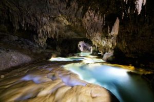 サンゴ礁が隆起してできたこの島には数多くの鍾乳洞が存在し、それらを探検するアクティビティ「ケイビング」が盛んです。