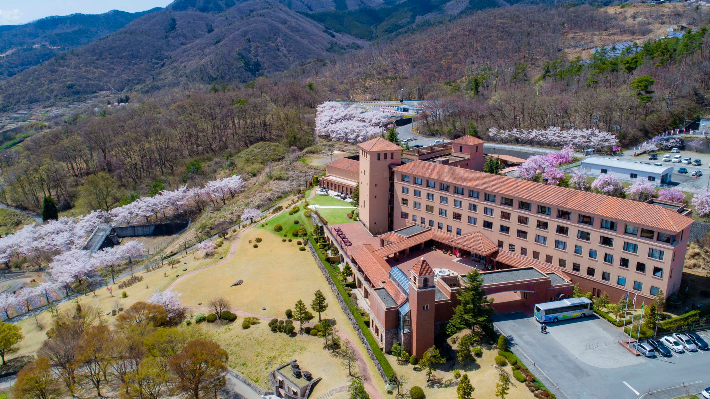 「上の山」と呼ばれる場所に立っており、天気が良い日には遠くに富士山を望むこともできます。