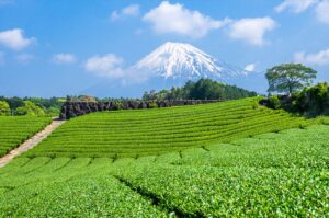 静岡県富士市、雄大な富士山と美しい茶畑が織りなす絶景が楽しめる「大渕笹場」は、まさに日本の原風景を象徴するような絶景スポットです。電線などの人工物が一切なく、写真撮影には最高のロケーションとして、多くの写真愛好家や観光客を魅了しています。特に新茶の季節には、鮮やかな緑色の茶畑と残雪の富士山のコントラストが息をのむ美しさです。