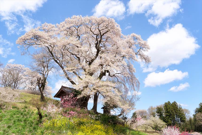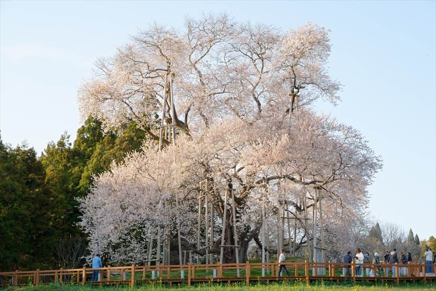 当サイトが「桜大国」と認定している福島県。その中でも桜の名所、三春町にある「八十内公園(やそうちこうえん)のかもん桜」は、樹齢350年、町の天然記念物にも指定されています。