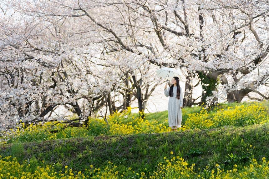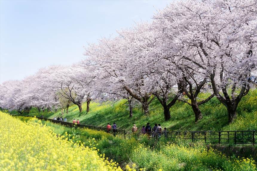 埼玉県吉見町にある、全長1.8kmにわたり500本もの桜が植えられている「吉見さくら堤公園」。