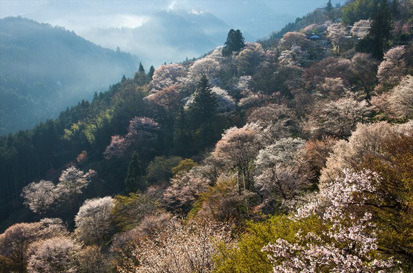 奈良県吉野町にある「吉野山」は、「吉野といえば桜、桜といえば吉野」と言われている場所で、日本三大桜名所(吉野・高遠・弘前)の1つです。3万本とも言われる桜で、山が埋め尽くされている姿は圧巻です。桃源郷が本当にあるのならば、ここなのかもしれません。